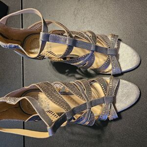 Vince Camuto Silver Suede Strappy Block Heels