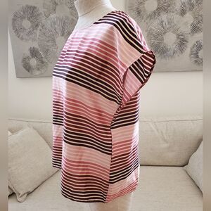 Gently used in great condition. Retails $60 Striped, Sleeveless, blouse. Size Large 100% Polyester Machine wash An75sc