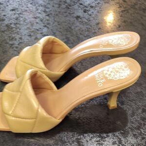 Vince Camuto Tan Quilted Sandals with Square Toe