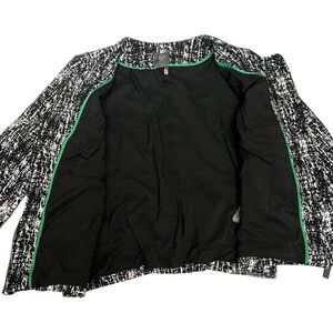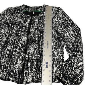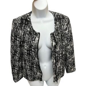 Vince Camuto Women's M Blazer Jacket Black White Zip Abstract Speckled Textured