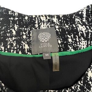 Vince Camuto Women's M Blazer Jacket Black White Full Zip modern artsy classic city chic tweed herringbone esc