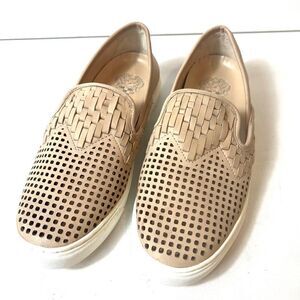 Vince Camuto Womens Size 8M Beige Leather Perforated Slip On Comfort Casual Shoe
