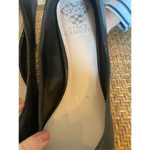 Vince Camuto black rounded toe leather heels with 2.5” heel and small platform .5”. Gently worn little to no wear on sole light wear to inside from storage.
