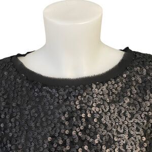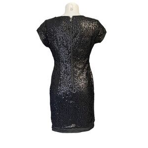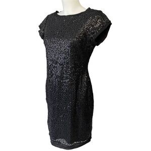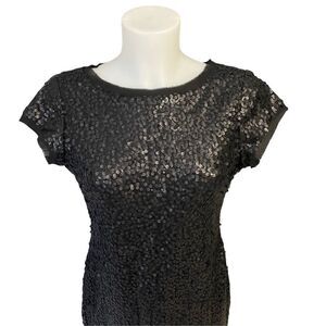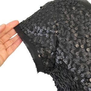 Vince Camuto Black Fully Sequinned Mini Evening/ Casual Dress Frayed Trims Sz 4
