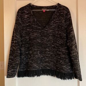 Vince Camuto Black Fringe Pullover Top Blouse Size Large