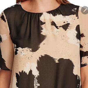 A faux cowhide print lends a chic touch to this gauzy chiffon top from Vince Camuto, a short-sleeve pick complete with a keyhole at the back neckline.