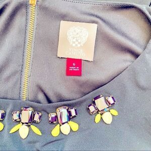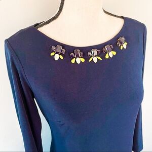 Vince Camuto • Navy Long Sleeve Embellished Jewel Neck Shift Dress Sz 6