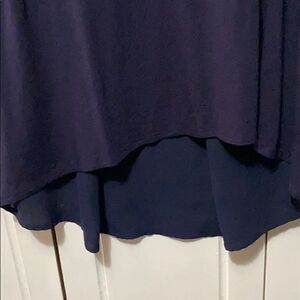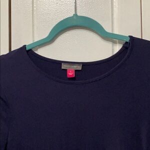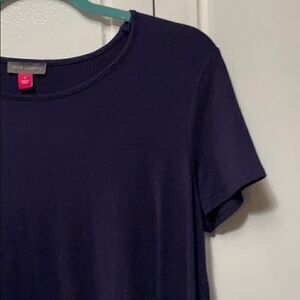 Vince Camuto gorgeous navy blue cap sleeve crew neck Tunic Top size small in excellent condition. High low hem. Nice back detail. Armpit to armpit is approximately 17” flat. Front length is approximately 25”, back length approximately 31”.