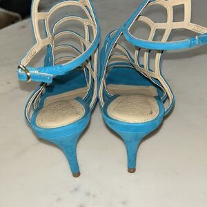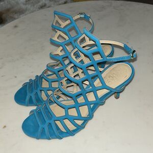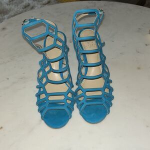 Great condition, normal wear on bottoms. Gorgeous teal suede. 3.5 inch heel.