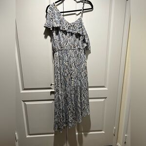 New Vince Camuto Asymetric Flutter Dress, Size XSmall. Ruffled bodice, elastic and drawstring waist. Fully lined. Color is described as “soft ash,” mauve tones, photos not altered. Beautiful, flowy feel!