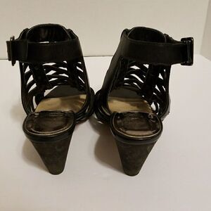 This is a pair of Vince Camuto heels in a size 6. These are a open toed herachi style heel/Sandals.