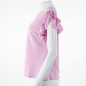 Bring on a chic update to your classic casual style wearing the Vince Camuto Tiered Ruffle Sleeve Crew Neck Tee. Pullover style with crew neck. Tiered ruffled cap sleeves.