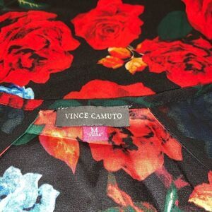 Vince Camuto sleeveless top red and blue rose print, sheer shoulders