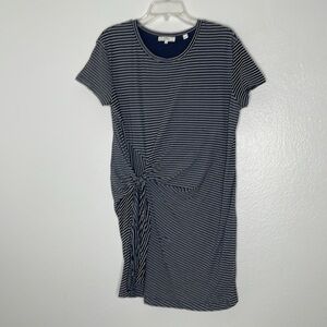 Vince Classic Stripe Side Tie Short Sleeve Cotton Knit Dress Size Medium