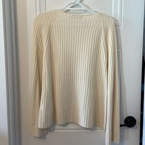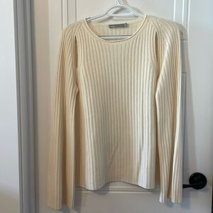 EUC- round neckline, ribbed 100% cashmere sweater with wide sleeves and slits in front shoulder area.