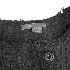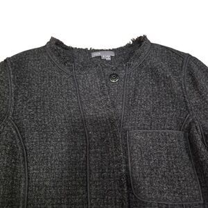 Vince, Modern, Boucle, Wool Blend, Frayed Hem, Snap Button, Workout, Fall, Winter, Spring, Vince Frayed Hem Wool Blend Boucle Blazer Women's 8 Charcoal Gray Jacket.