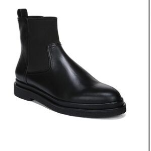 Plunging elastic panels accentuate the taller shaft of a workwear-inspired Chelsea boot set on a traditional crepe rubber sole.