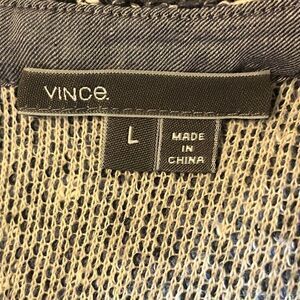 Vince Marled Tweed Blue Knit Rolled Cuff Short Sleeve Shift Dress Sz L