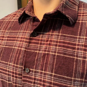 Vince Medium Red Plaid Cotton Long Sleeve Button-Up Shirt Size