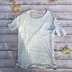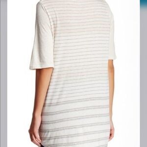 This casual tee is crafted from a soft Pima cotton blend and features a solid front that flips to bold, variegated stripes in back. - Crew neck - Elbow sleeves - Approx. 26" shortest length, 29" longest length (size M) - Imported