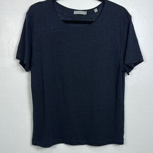 Vince Navy Blue Linen Short Sleeve Crew Neck T-Shirt Size L