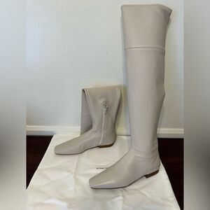 Size 8, Our minimalist over-the-knee boot is rendered in buttery leather with a slim square toe and low heel.