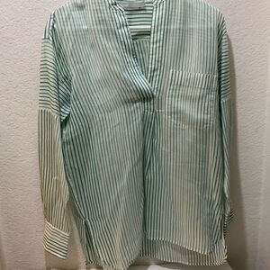 Vince Pencil Stripe Cotton & Silk Tunic In Malachite Popover Tunic Sheer XS