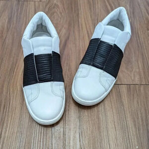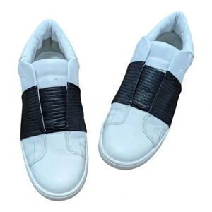 Vince Size 5M Vista Lace Less Lizard Embossed Leather Slip-on Sneakers White Black