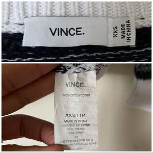 Vince Striped Black & White pullover knit sweater XXS 100% Cotton