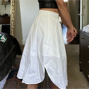 Design details: dual side on-seam pockets, elasticized drawstring waist, wide hem with side slits at seams. Machine wash. Shell: 100% cotton. Lining: 100% polyester.