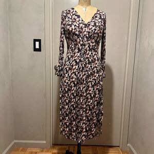 Vince micro painted floral twist drape midi dress