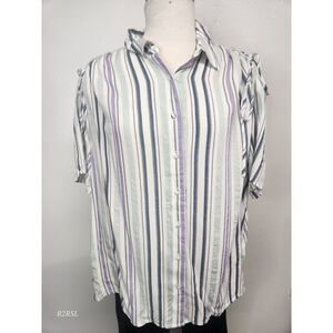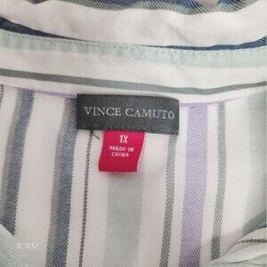 Vincent Camuto blouse button down white w/ color stripes Women's Plus 1X