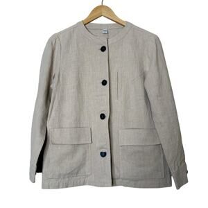 Vincent Khaki Linen Jacket Button Front Casual Summer Neutral Quiet Luxury Large