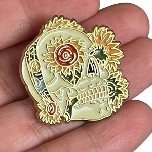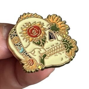 Vincent Van Gogh Inspired Artwork Sunflower Skull Enamel Pin