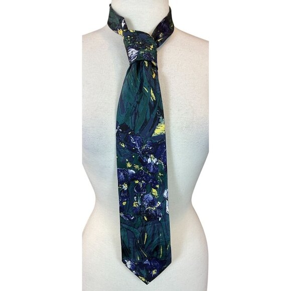 Vincent Van Gogh Irises 100% Silk Tie Museum Artifacts Vibrant Blue Green Floral
