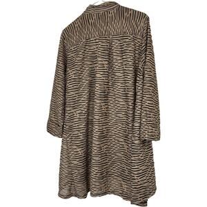 This item is a Vincente Milan New York Paris Shawl/ Shrug in a brown and black striped textured fabric with toggle front closure. It is a size XL. This item is in pre-owned condition with normal light wear consistent with age/use (see photos).