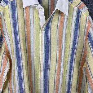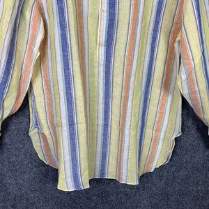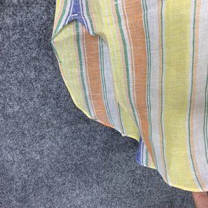 Vincenzo Di Ruggiero 100% Linen 1/2 Button Shirt Vertical Pastel Stripe Long Sleeve