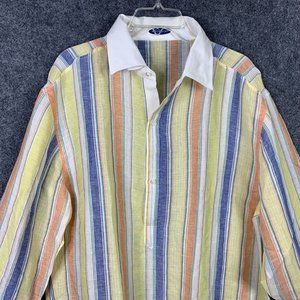 Vincenzo Di Ruggiero 100% Linen 1/2 Button Shirt Stripe Long Sleeve Italy NWOT