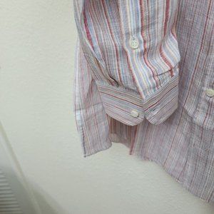 Vincenzo di Ruggiero Men’s Linen Stripe Shirt Muted stripes of red, blue, and white