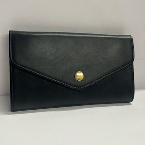 This is a beautiful Vinci Large Black Leather Clutch Wallet. Excellent condition. A few minor scuffs from normal wear, but overall excellent condition. No odors. No tears. 7.5” x 4.5” x 1”