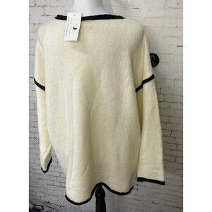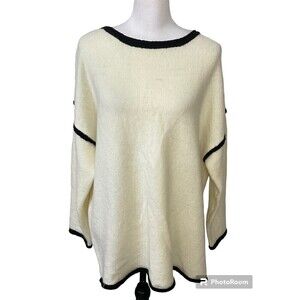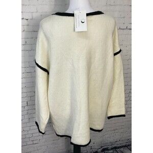 Vine And Love Women L Cream Sweater Black Trim Oversized Comfort Long Sleeve N2
