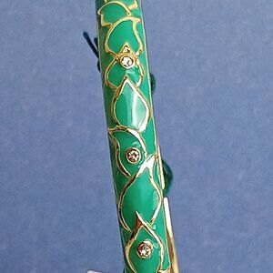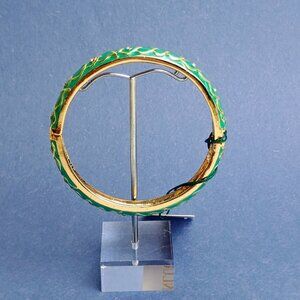 Vine Leaf Pattern Turquoise Enamel Hinge Bangle Skinny Bracelet Exquisite Casual