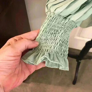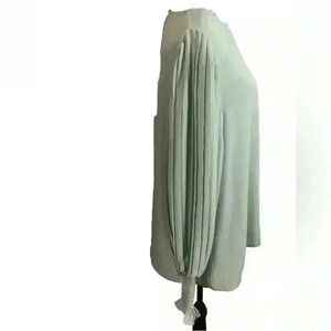 Vine & Love Large Green Silky Blouse with Accordian Puff Sleeves L/S NWT