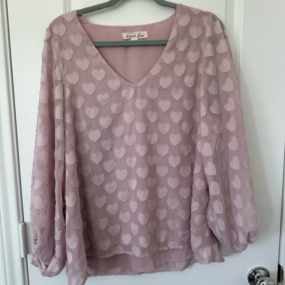 Vine & Love Purple Heart Pattern V-Neck long sleeve Blouse