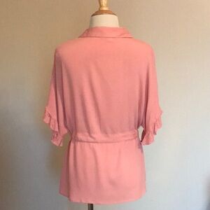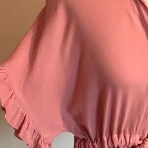 Vine & Love Women Small Drawstring Waist Ruffle Sleeve Tunic Top Barbie Girlhood