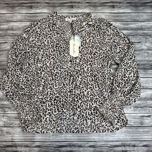 Vine & Love Women's Animal Print Collared Blouse L LG Large Cream Brown Cheetah