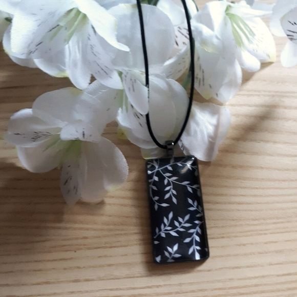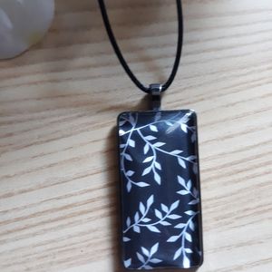 Black and white vine style glass pendant.