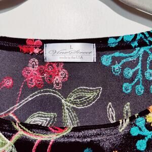Vine Street Sz L Black Velvet All Over Embroidered Shirt Lettuce Hem Fairy
