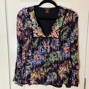 Vineet Bahl Anthropologie Floral Embroidered Boho Blouse Bell Sleeves Size S