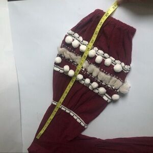 Ballon sleeves with pom pins ,tassels and embroidery details